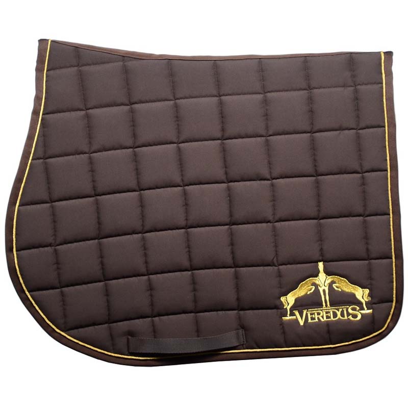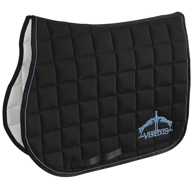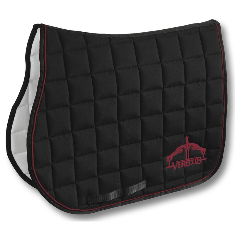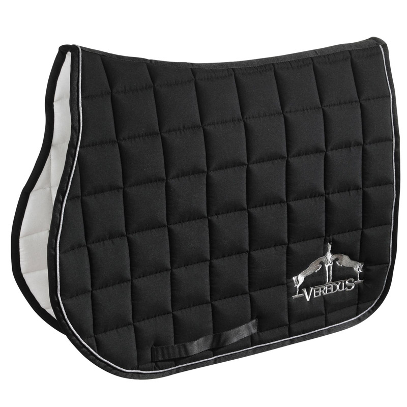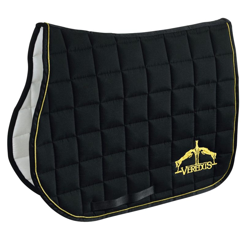 Jumping saddlecloth made from cotton and polyester with moisture wicking padding. Natural coloured Microfiber lining that is durable with a reinforced trim around the edge. The breathable padding guarantees better comfort, offers a shock-absorbing effect and provides protective cushioning against the weight of the saddle. Full size.