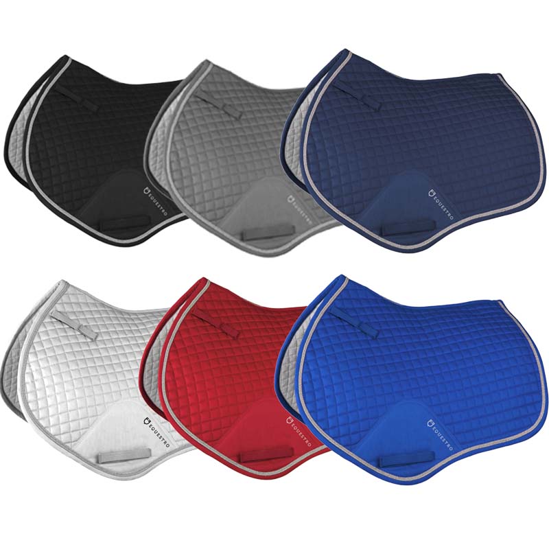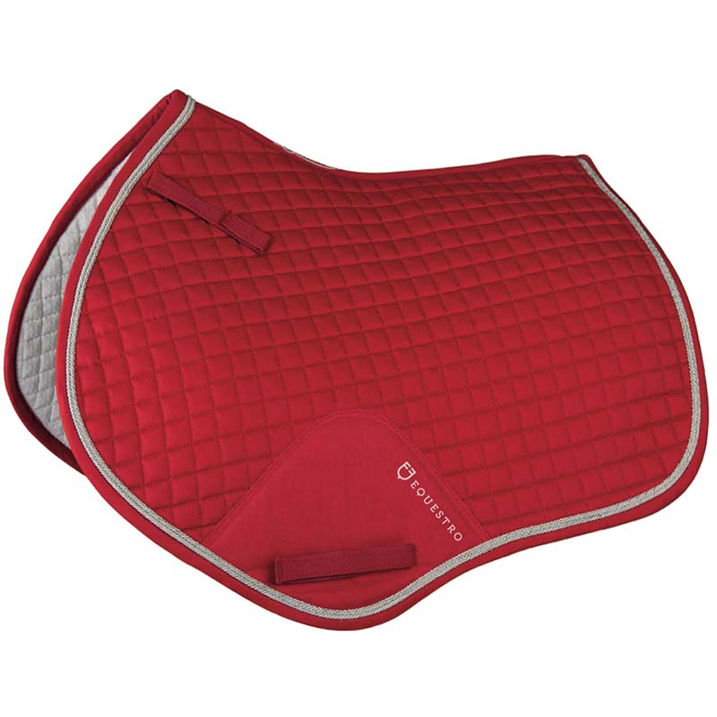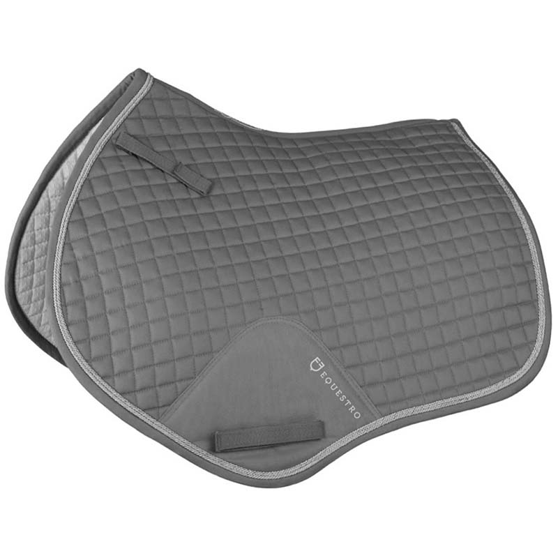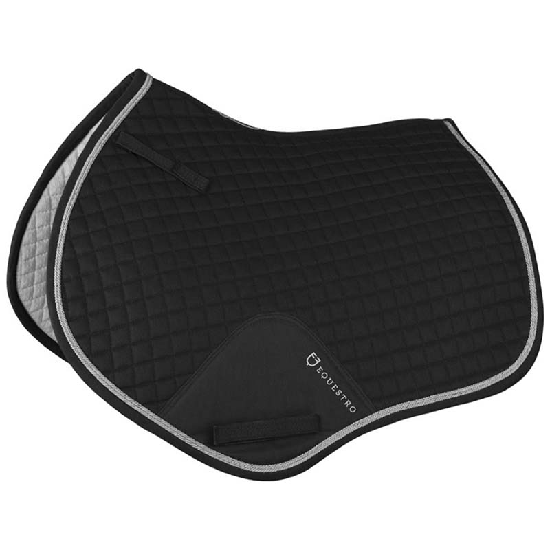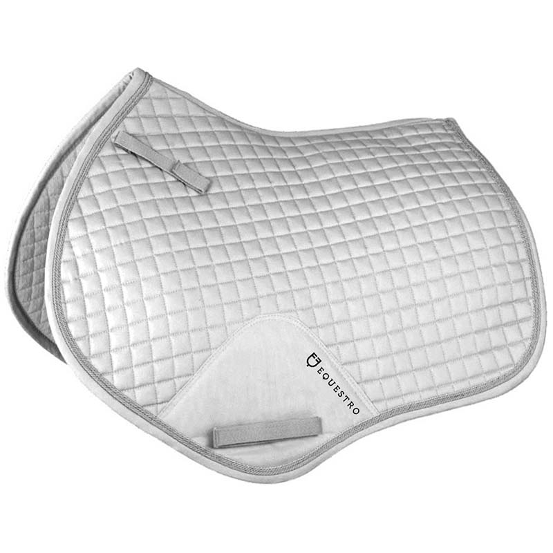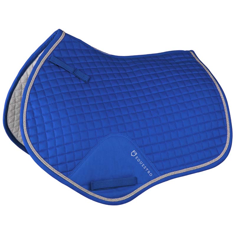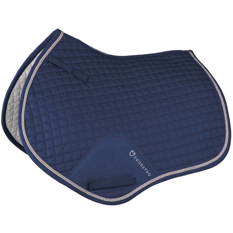 English cotton saddlecloth Equestro, shaped pattern braided. English jumping model shaped and quilted cotton, with braids and reinforcements of Equestro collection. Full Size.