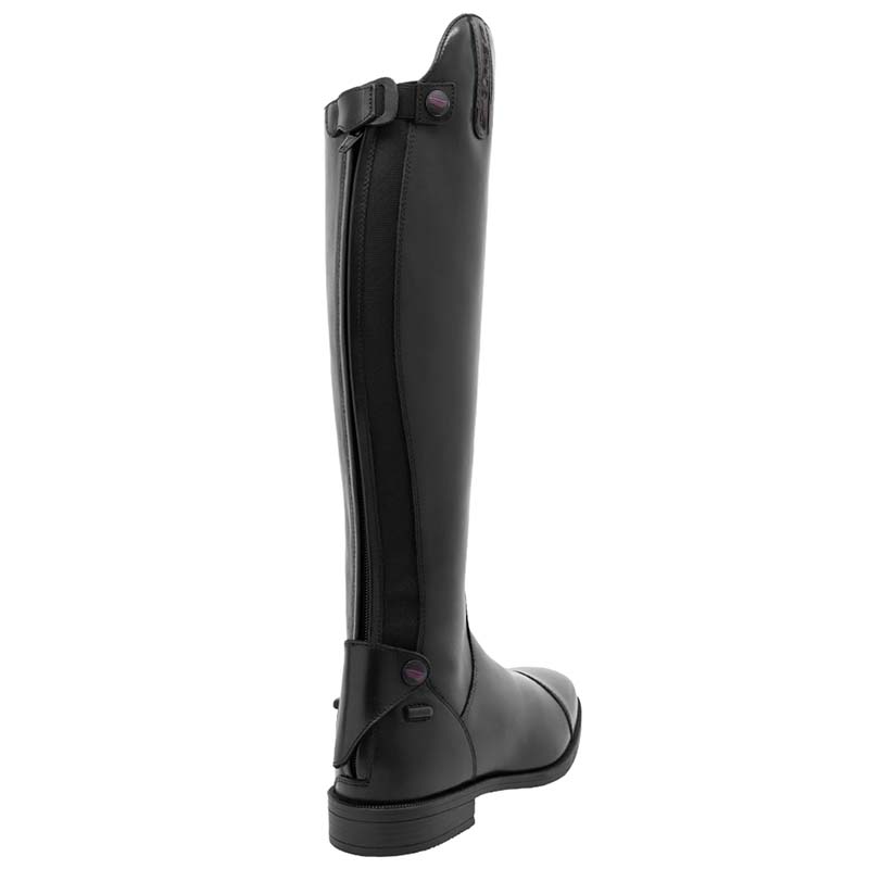 Supreme unisex riding boots for English riding, smooth leather model without laces, featuring a rear zip closure and a strap with logo button. The Supreme smooth boots are the ideal choice for riders seeking a classic and functional design, perfect for training and competitions. Crafted from smooth black leather, these boots offer a comfortable fit thanks to the leather lining and insole, while the anti-slip rubber sole ensures excellent grip on the stirrups during riding. The rear zip closure, combined with an elastic panel, ensures easy wearability and an adaptable fit for the rider’s calf. The heel features a spur holder to securely attach spurs to the boots. Supreme unisex riding boots are available in a variety of calf sizes and heights: see the Size Chart to find your perfect fit. • Smooth, lace-free design, classic and elegant. • Soft leather for exterior and interior, for superior comfort. • Spur holder on the heel, ideal for competitions and events. • Rear zip closure with elastic panel, for easy wearability and a snug fit. • Anti-slip rubber sole, for excellent grip on the stirrups. • Wide range of calf sizes, suitable for men, women, and young riders.