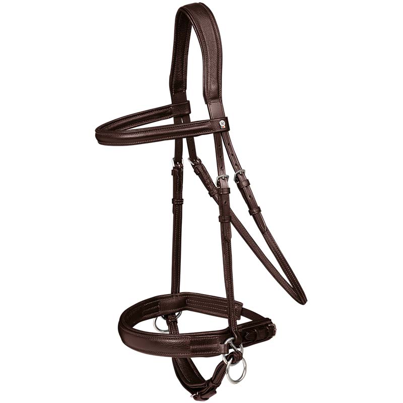 English Bitless Bridle Waldhausen X-Line Supersoft. Complete bitless bridle, high quality leather, with straight browband, anatomical headpiece, with padded inserts and stainless steel buckles. This bridless bridle is based on the pressure on the chin of the horse, the SCAWBRIG, for well-trained horses. Black colour.
