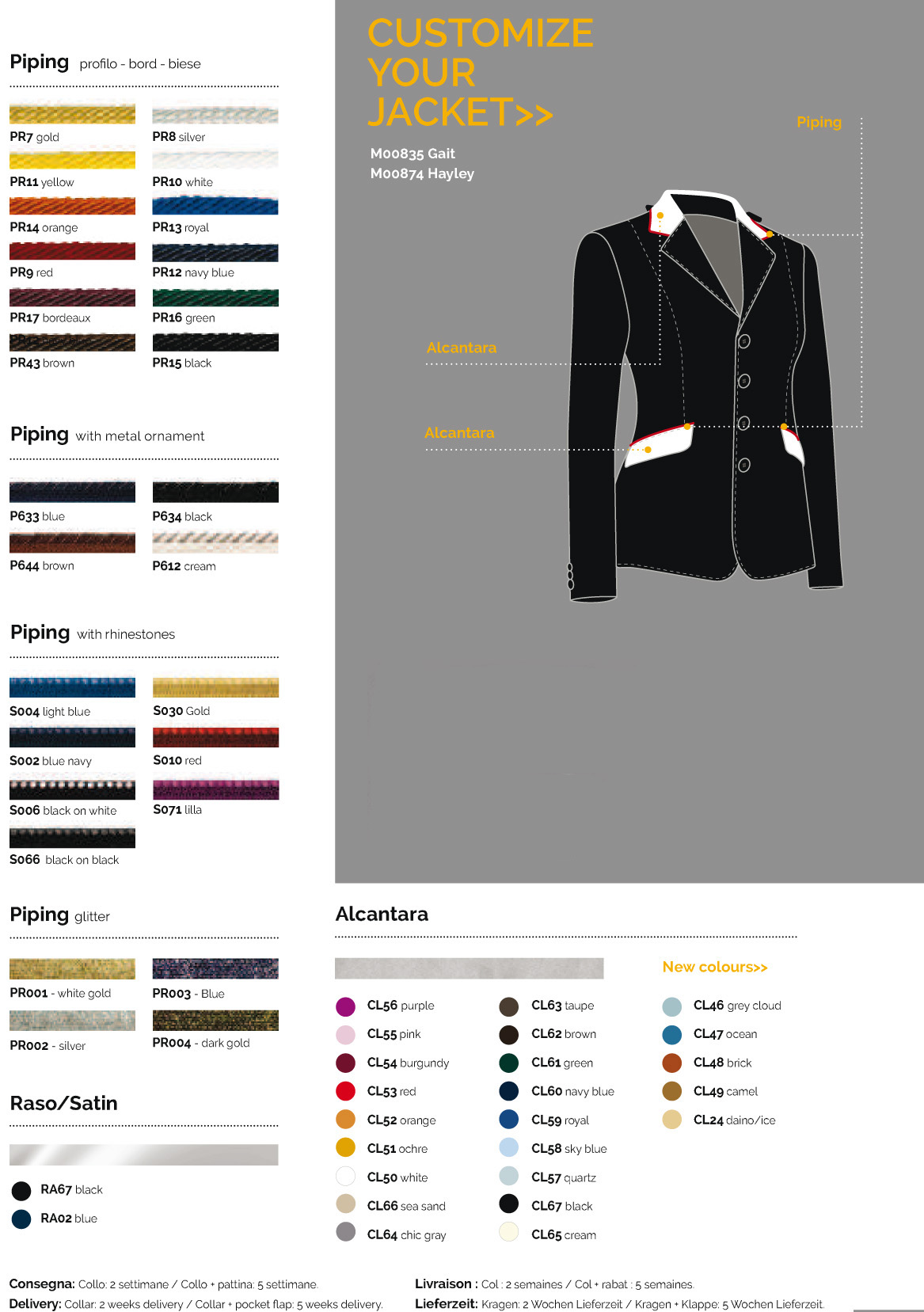 Supplement for customization jacket competition Equiline woman. Will custom collar and pocket flap of the jacket Equiline purchased in our online store. The processing times are about 5 weeks for custom neck and pocket details.