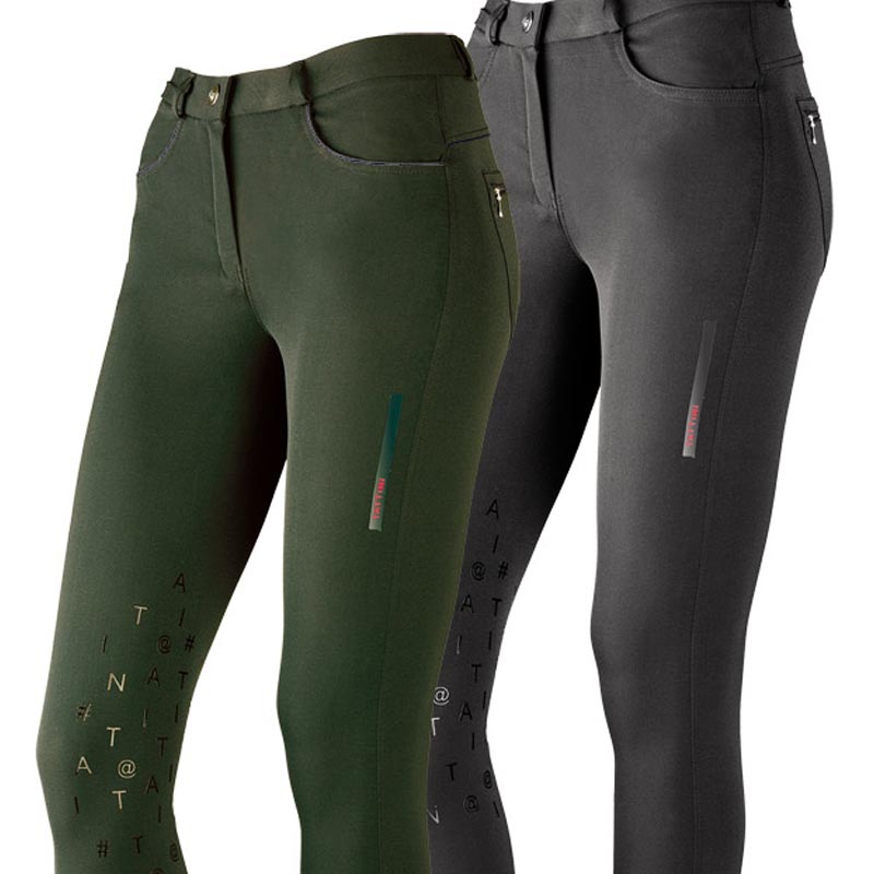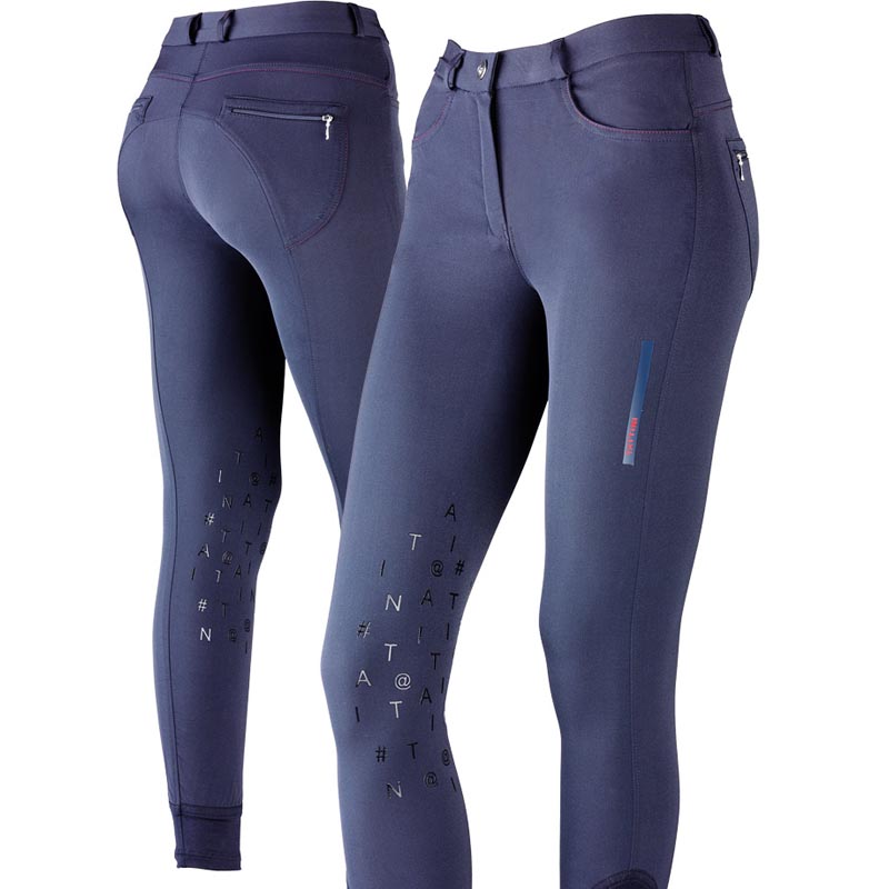 Tattini Ladies riding breeches model Amaranto with knee grip. Technical riding trousers, close-fitting Tattini Amaranth model for women, in soft and comfortable Micronylon fabric (87% micro-nylon, 13% spandex), light and extraordinarily comfortable. Front pockets as American style, back pockets with zip, model with contrasting stitching. Rear shape for a better fit and adherence, elasticated Lycra ankle inserts, knee patches with non-slip silicone grip insert. This item cannot be returned, i.e. it cannot be exchanged, replaced or refunded.