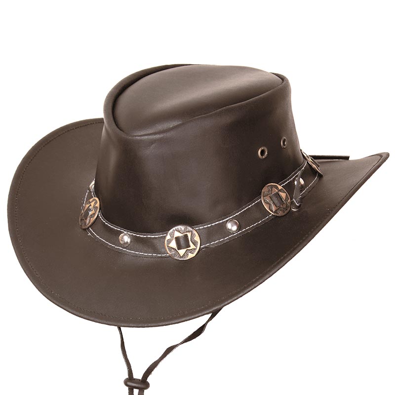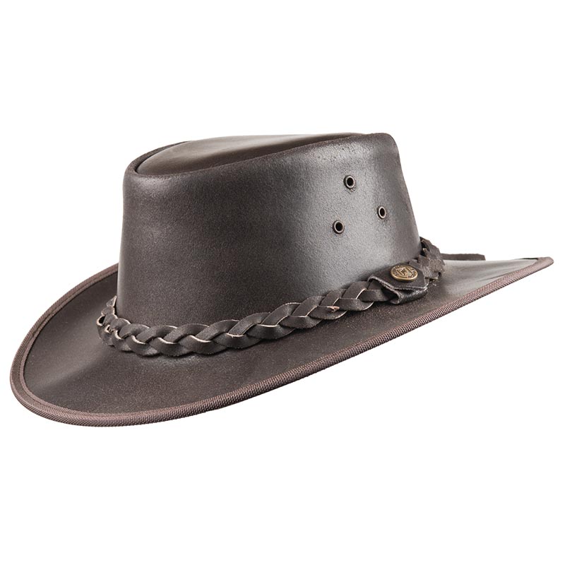 Australian hat waterproof, waxed cotton cloth with lace, unisex model. Dark brown. Please note: the model may differ slightly from the one in the photo.