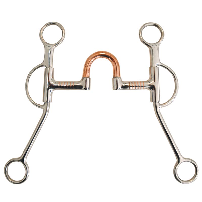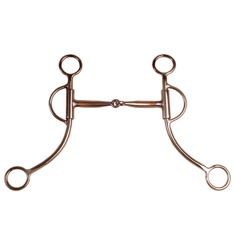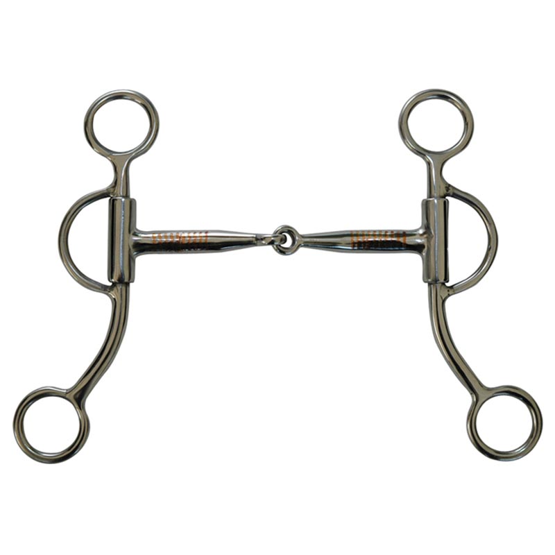 Full western stainless steel bit with copper mouthpiece. With engravings on side bars. Misura mm 125.
