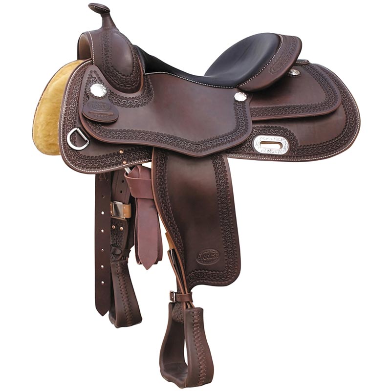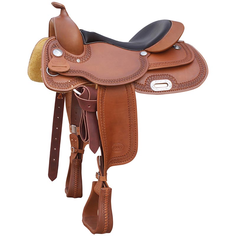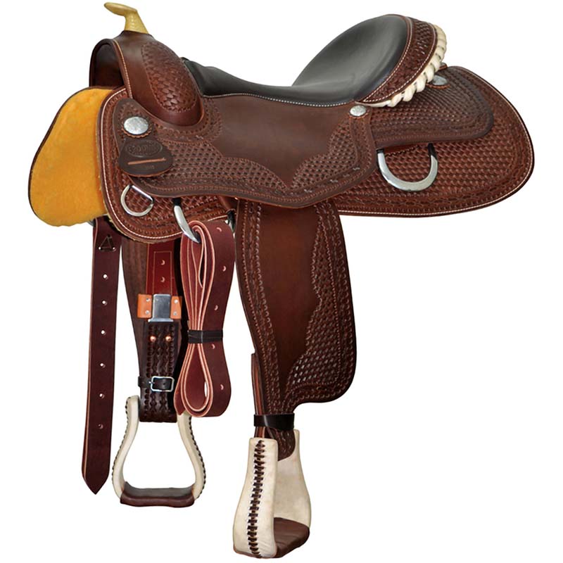 Western Pool’s saddle, Reining Full Contact Full Skirt model, border stamp processing, Ralide saddlebow, greased leather, smooth leather seat.