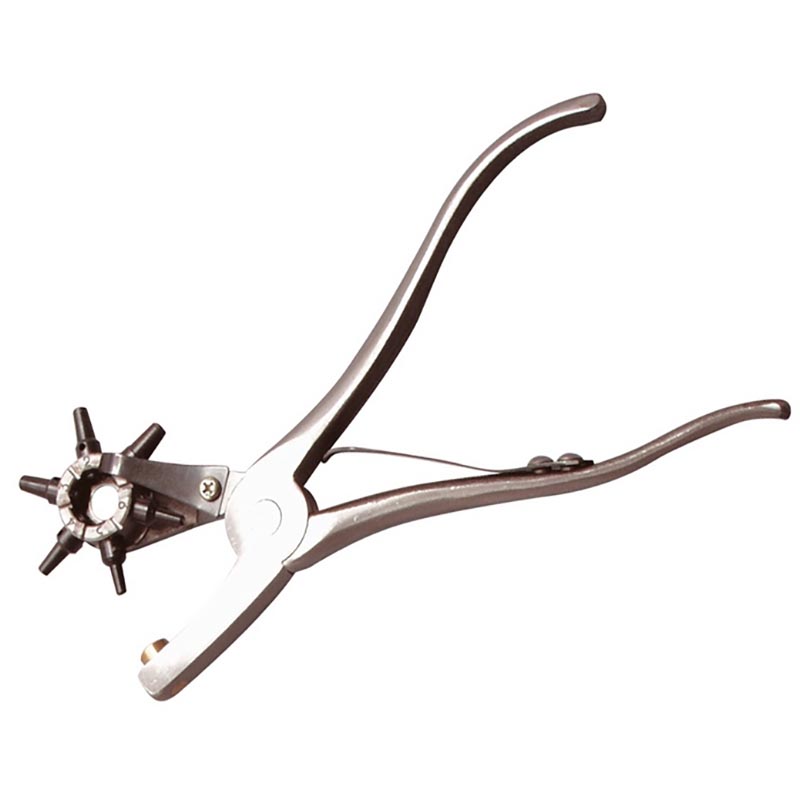 Heavy stainless steel Leather punch with revolving head, tubes included.