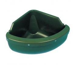 Polyethilene corner manger, supplied with anti-wasting border. Green Colour. Capacity: 30 Litri Size: 42 cm width; 32 cm high; 30 cm. depth