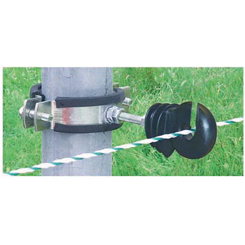 Adapter for round poles insulators. Easy Collar Adjustable adapter allows the mounting collar on round poles from 35mm up to 70mm, for insulators with iron screw 6mm. Easy to install, just tighten the screws with a screwdriver. Switch easily between the mesh. 1 piece.