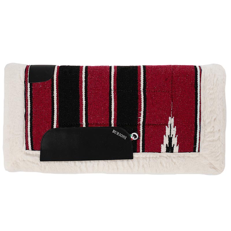 Lakota western saddle for reining, made in leather with basket décor, deep red colour, black leather seat. 16” measures . Double skirt, reinforced fibber glass tree, front lattigo, synthetic fleece padded, stirrups with leather cover . The offer for this saddle includes : - neoprene girth ( measures: 28”- 30” – 32” – 34” – 36” ) - Navajo western saddle pad with synthetic fleece foam and leather details - Western bridle made in smooth leather, with rein.