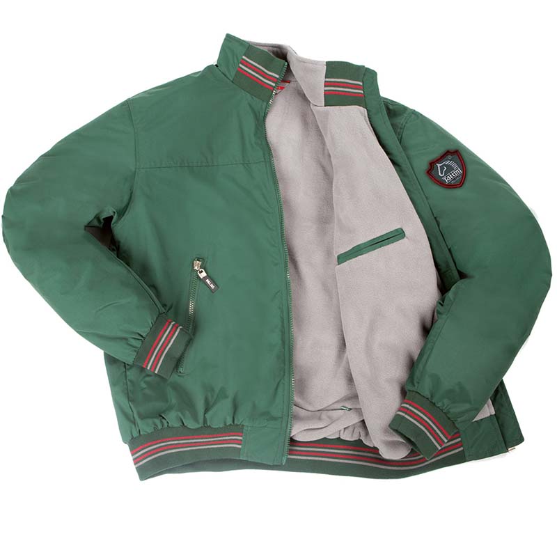 Bomber Tattini Tamigi unisex model made of water-repellent nylon with contrasting lining in warm microfleece antipilling, with two zipped front pockets and inside zip to the back for application of embroidery. Waistband, cuffs and front of the neck in stretch jersey tone on tone with contrasting stripes. Decorated with original Tattini shield left sleeve.