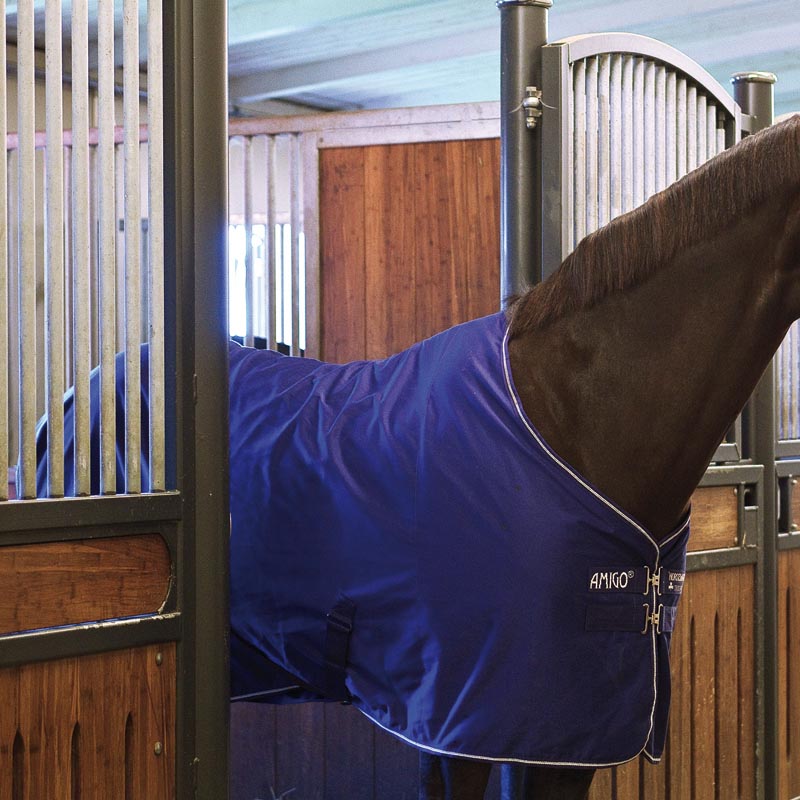 Cotton rug Horseware Amigo Stable Sheet. Rug box, in very soft cotton, perfect for all year round. Adjustable straps, under-tail, silky lining for shoulder area. Horseware classic original cut. Rug widely used in the changes of the season, as rug for transition, to keep the horse clean in the stable, also excellent for transport.